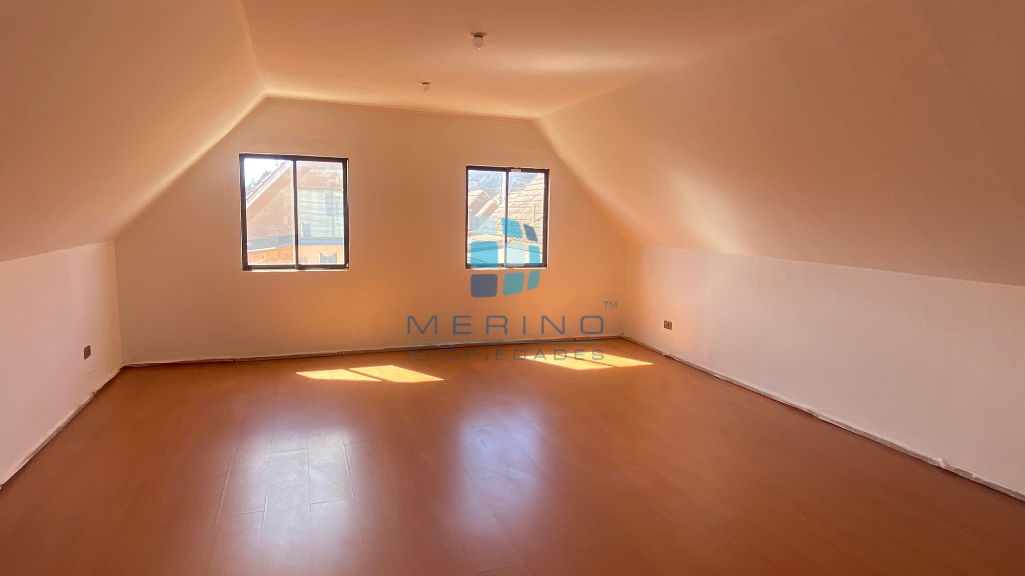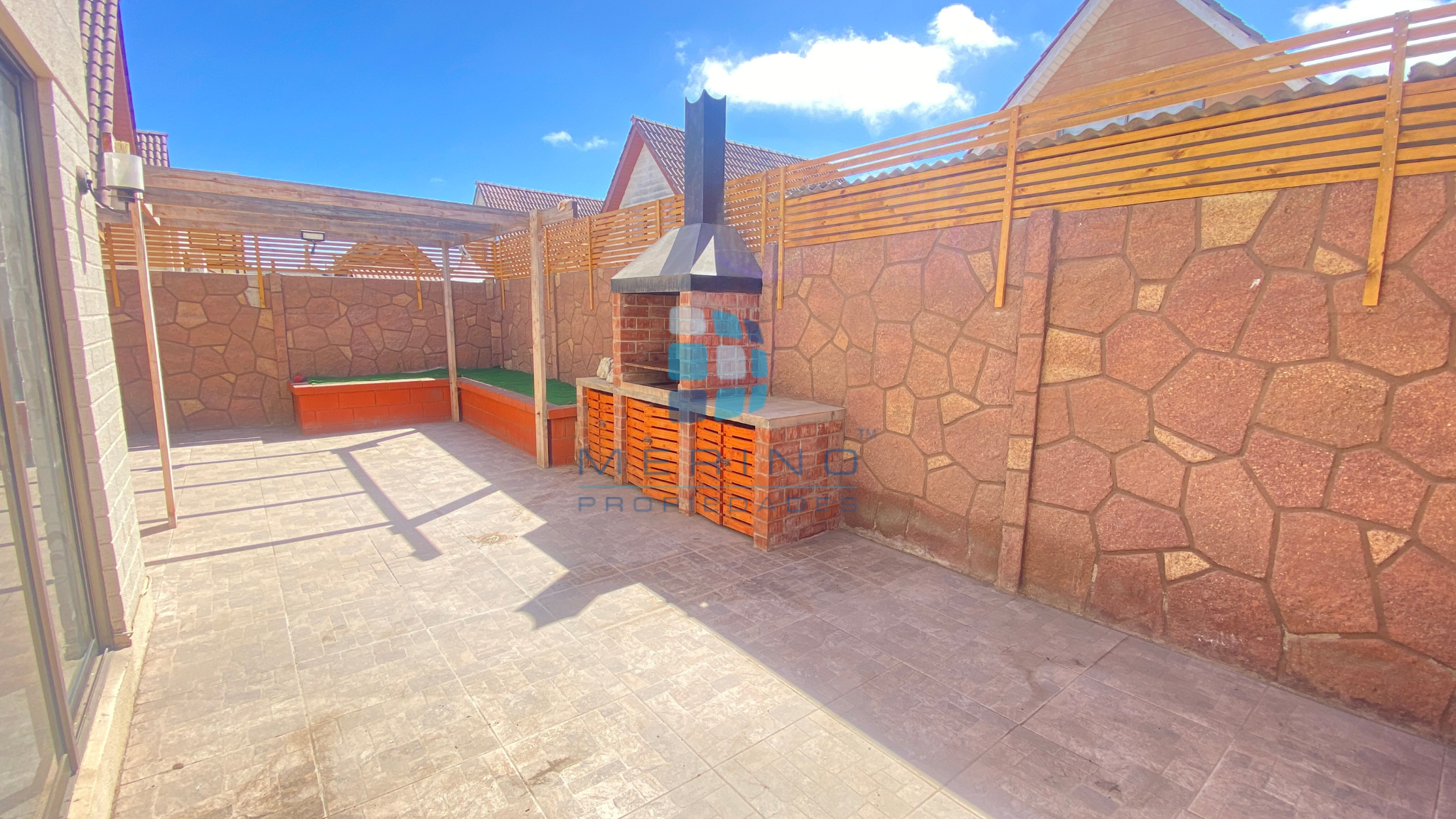 Dos pisos, con sector de recepción, salón, 2 habitaciones, 1 baño, cocina, estacionamiento para 3 vehículos.