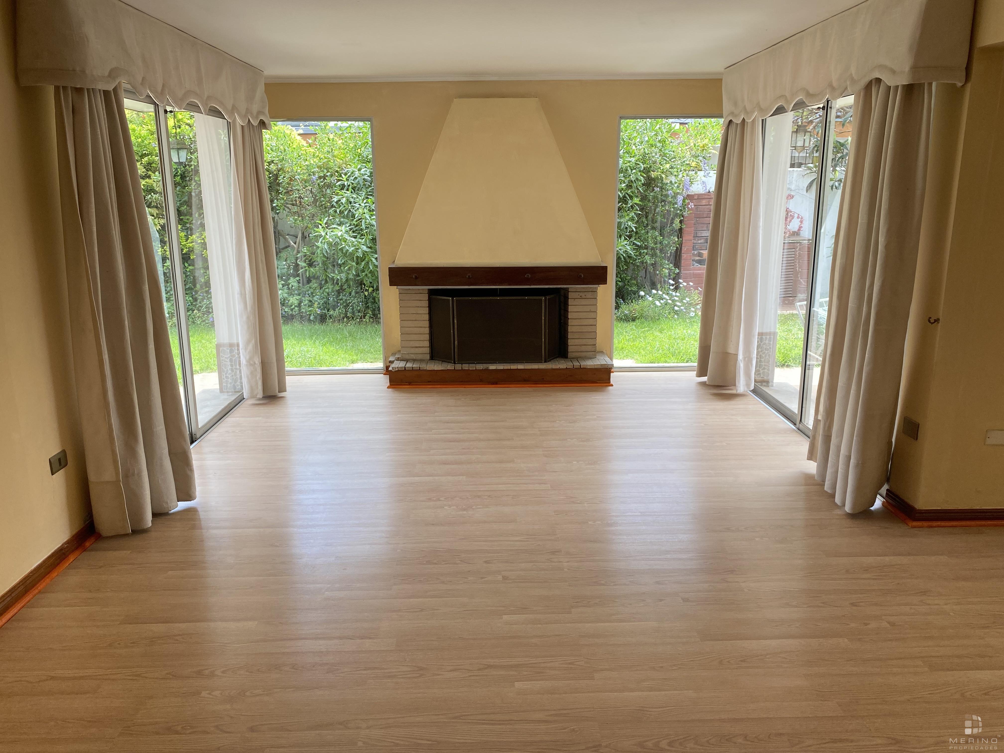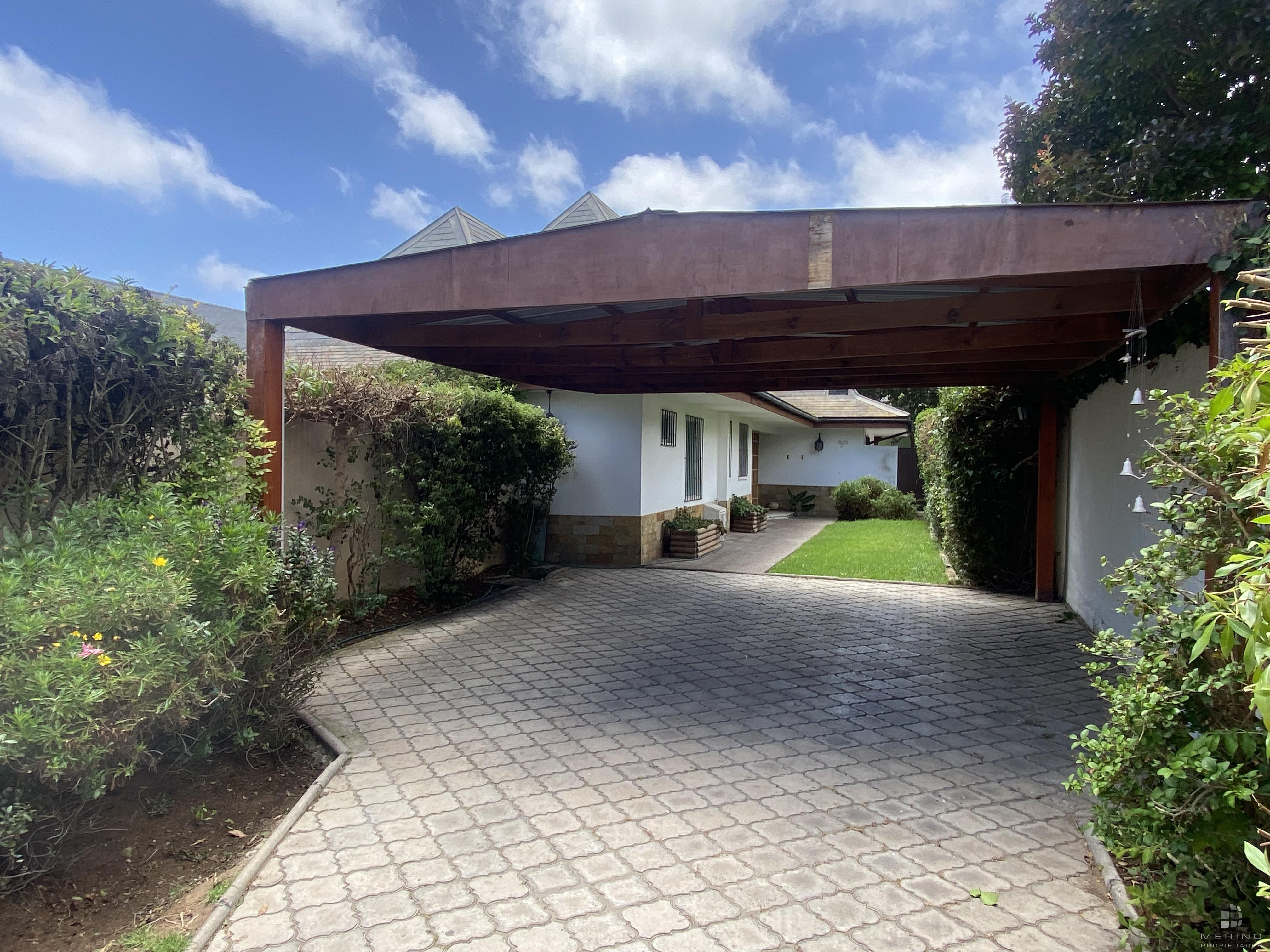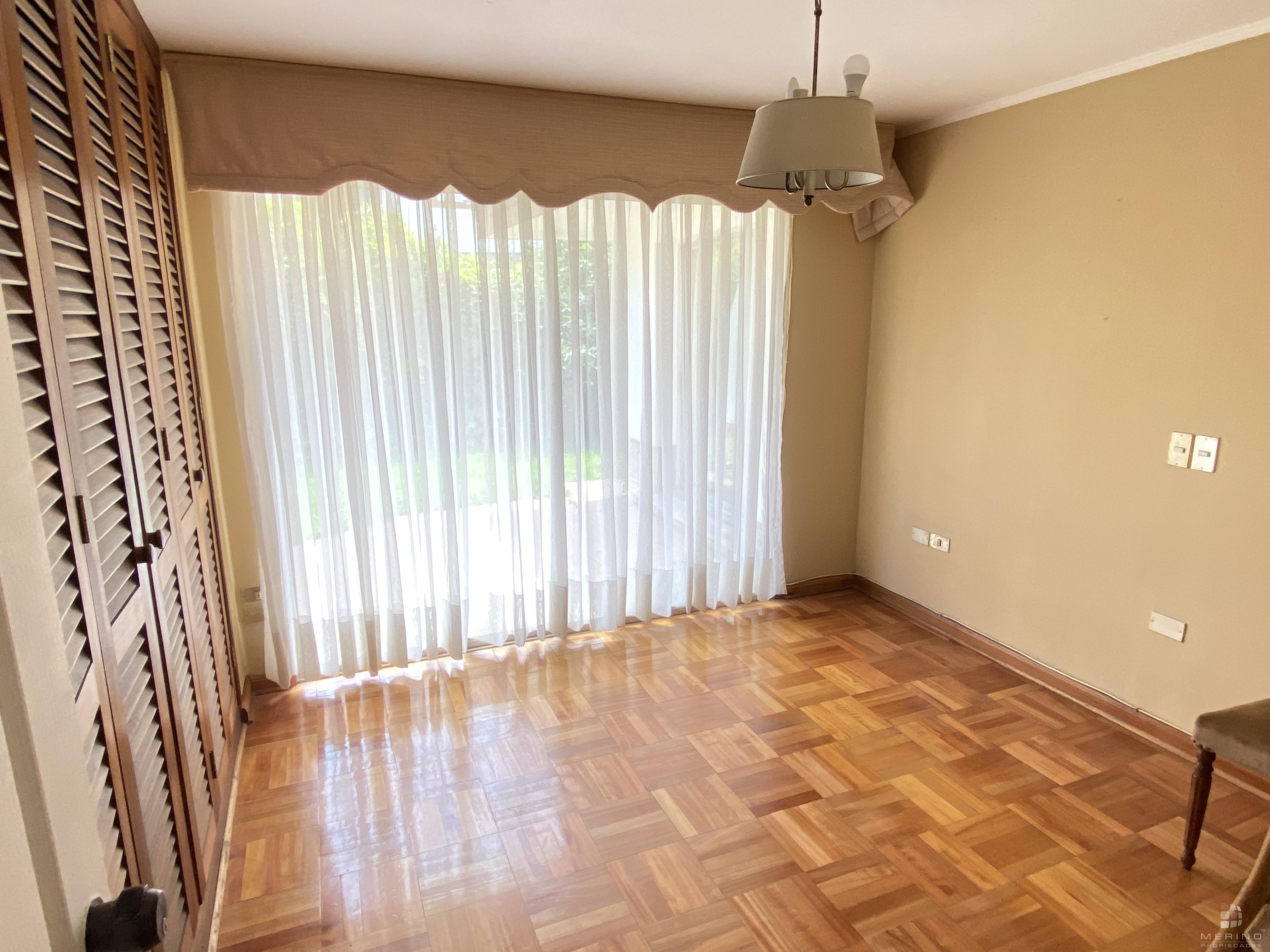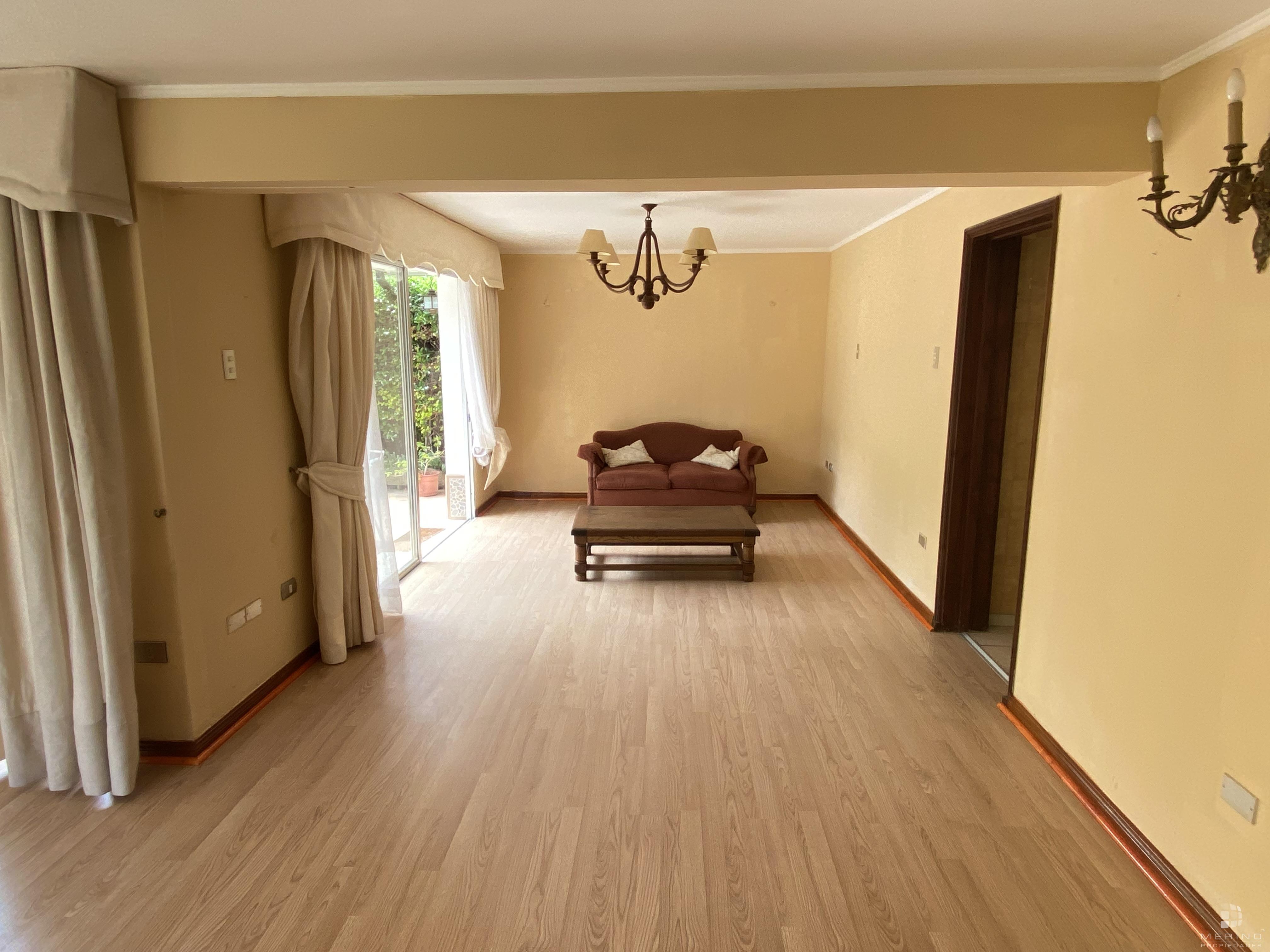 Amplia propiedad en condominio, dos pisos, 5 dormitorios, 4 baños, mas área de servicio con dormitorio y baño, agradable cocina cerrada amoblada, living y comedor en dos ambientes y con piso de parquet, recibidor, sala de estar, lavandería, lindo patio y antejardin con estacionamiento para 3 vehículos.