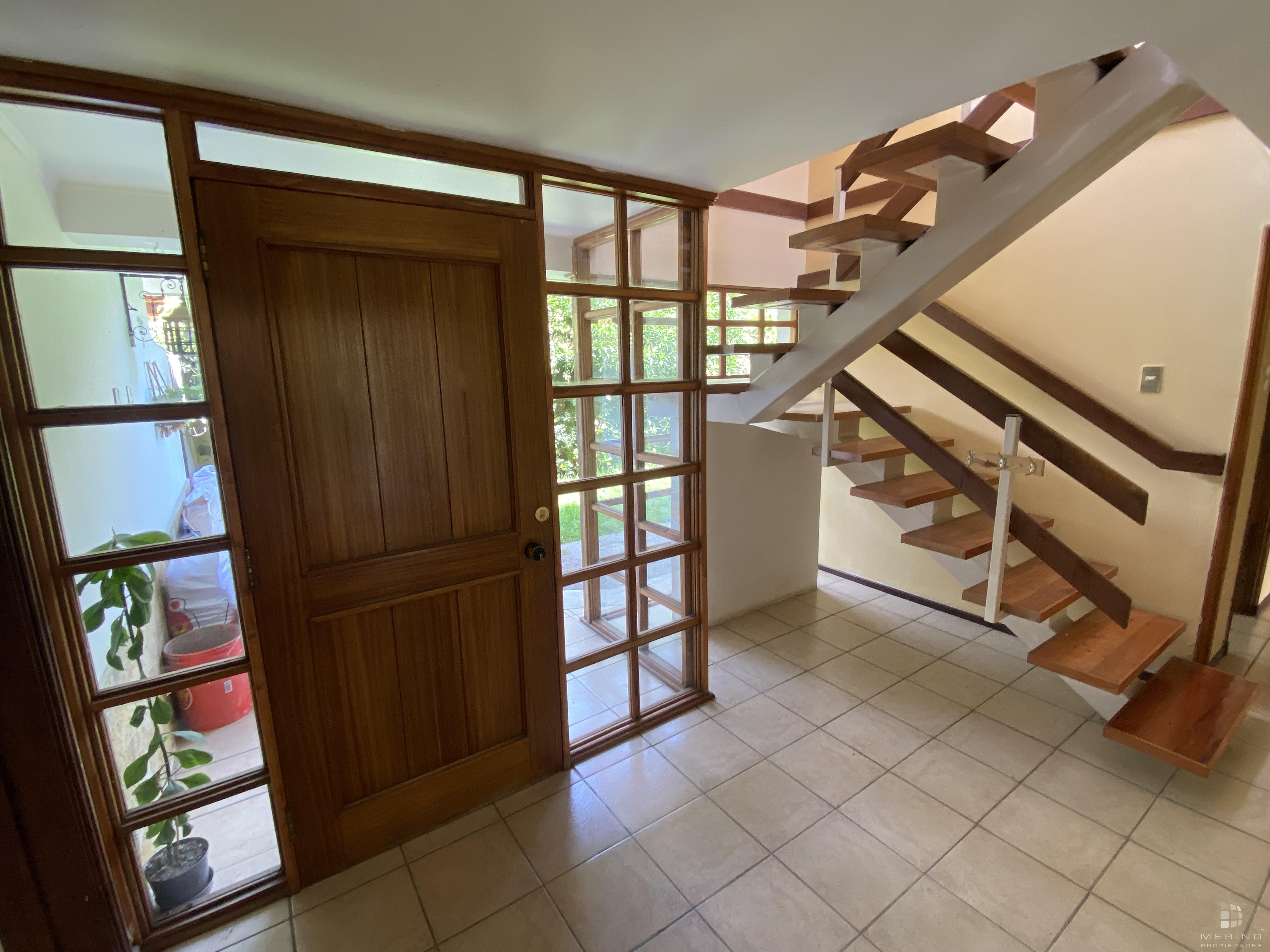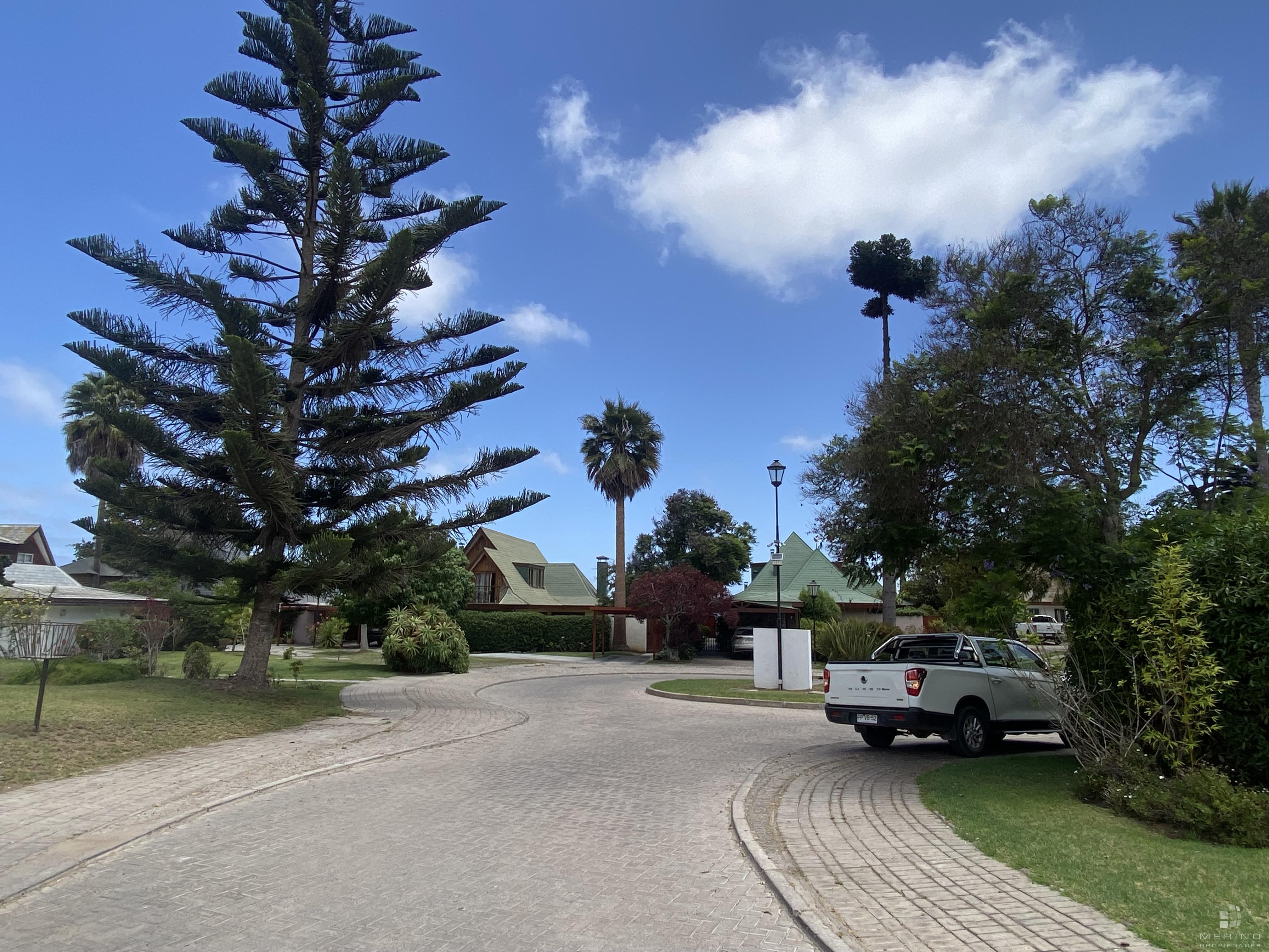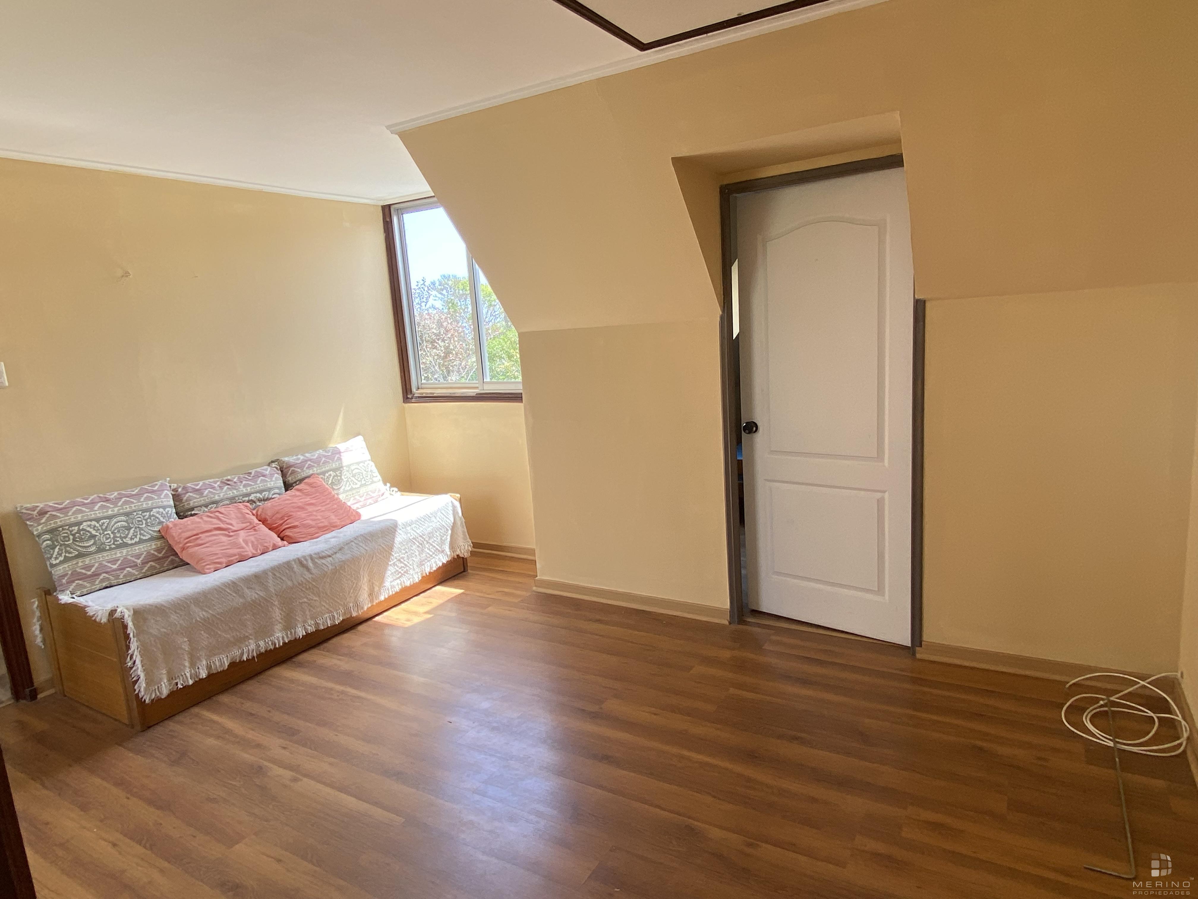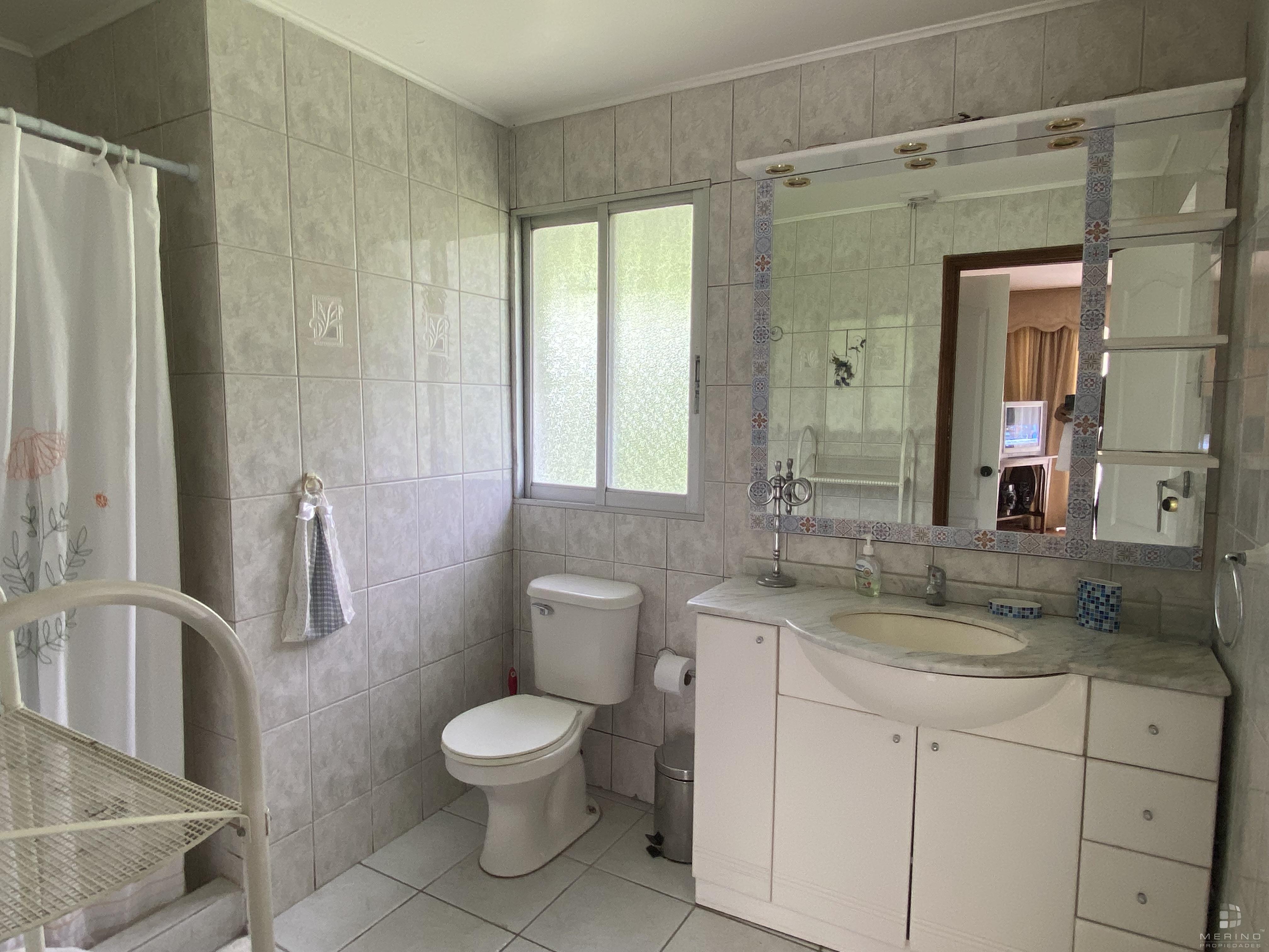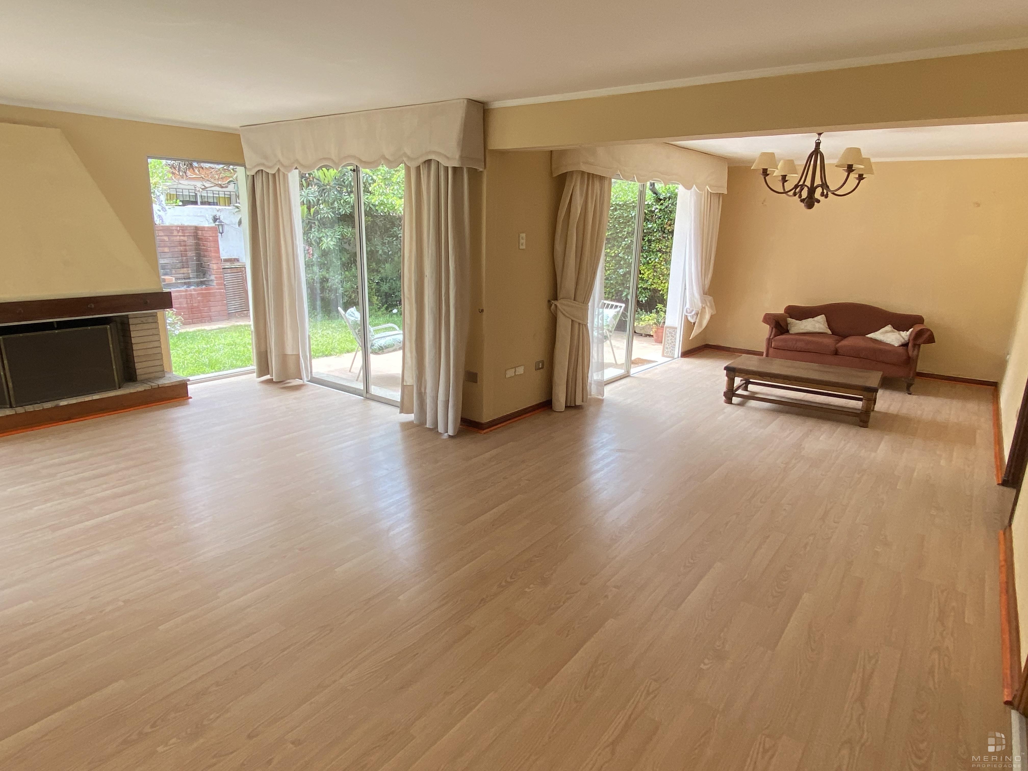Amplia propiedad en condominio, dos pisos, 5 dormitorios, 4 baños, mas área de servicio con dormitorio y baño, agradable cocina cerrada amoblada, living y comedor en dos ambientes y con piso de parquet, recibidor, sala de estar, lavandería, lindo patio y antejardin con estacionamiento para 3 vehículos.
