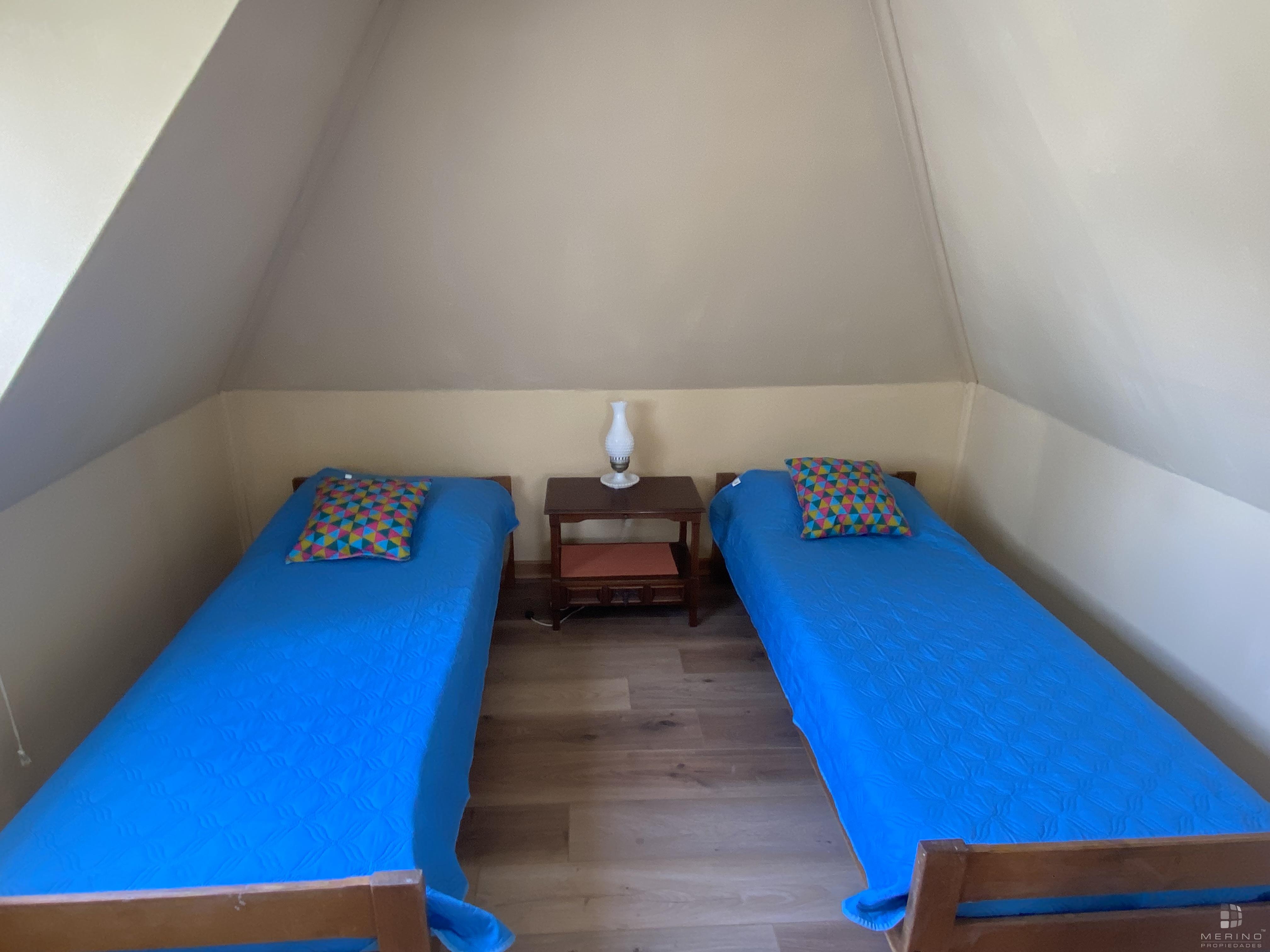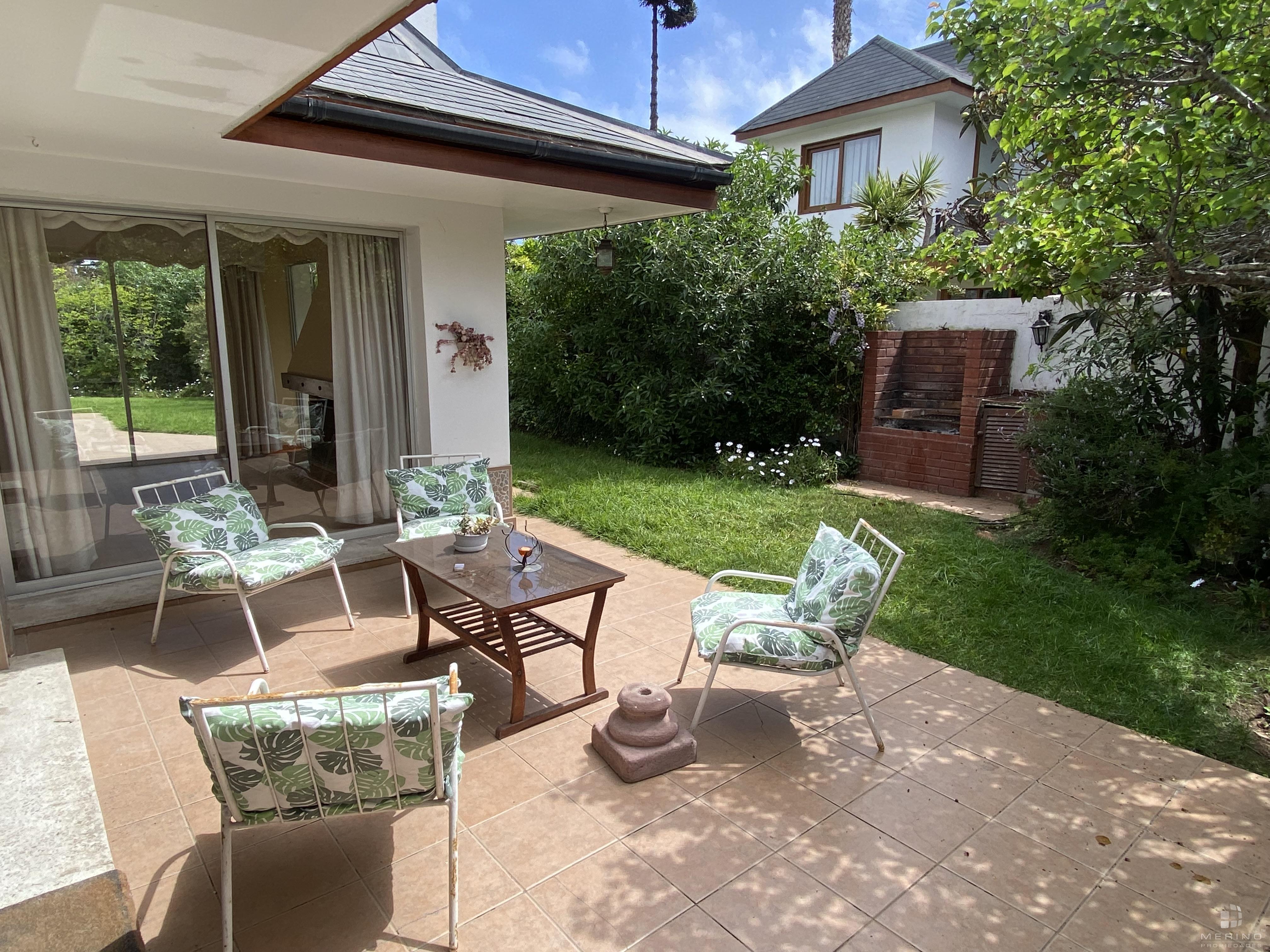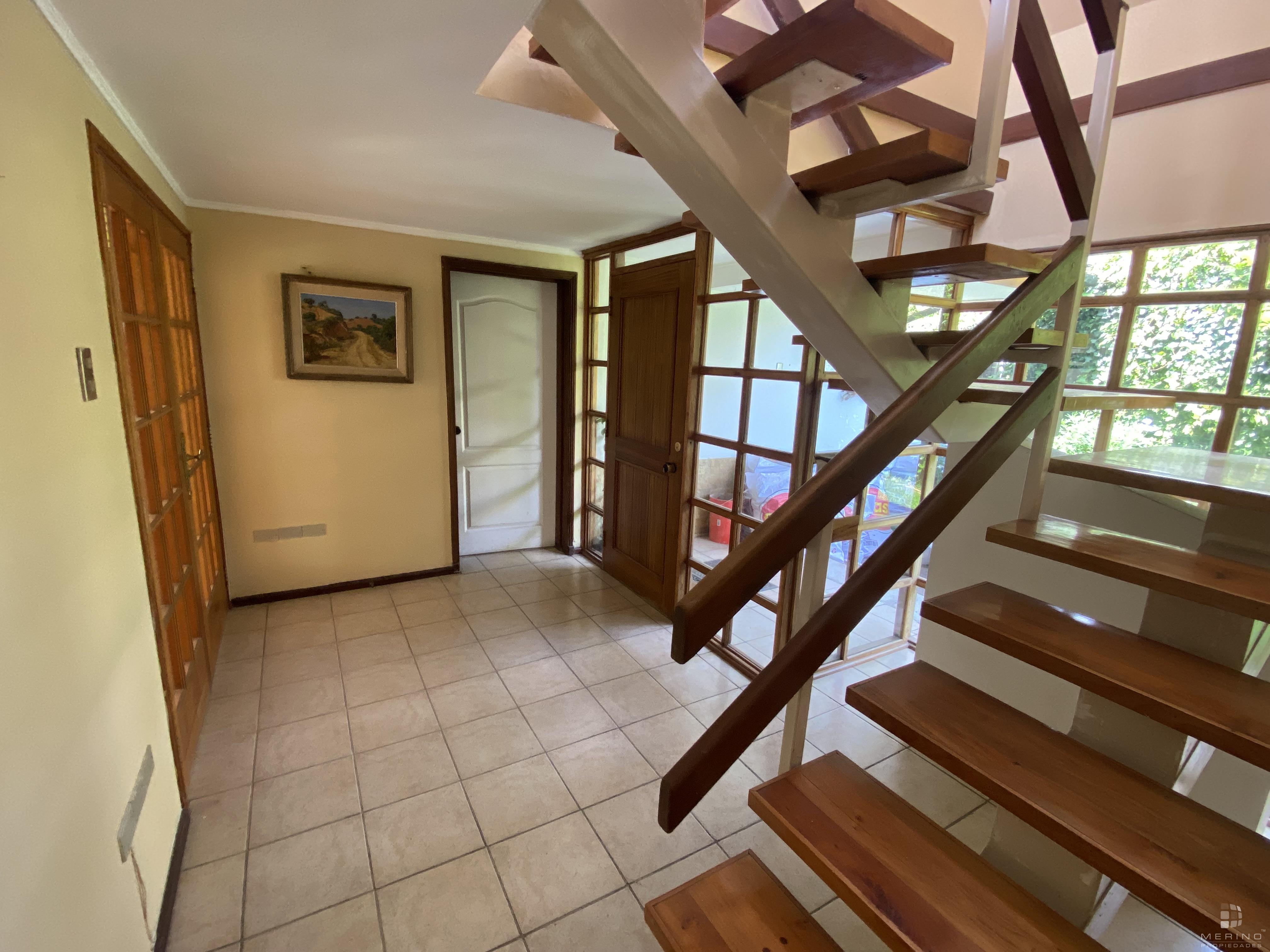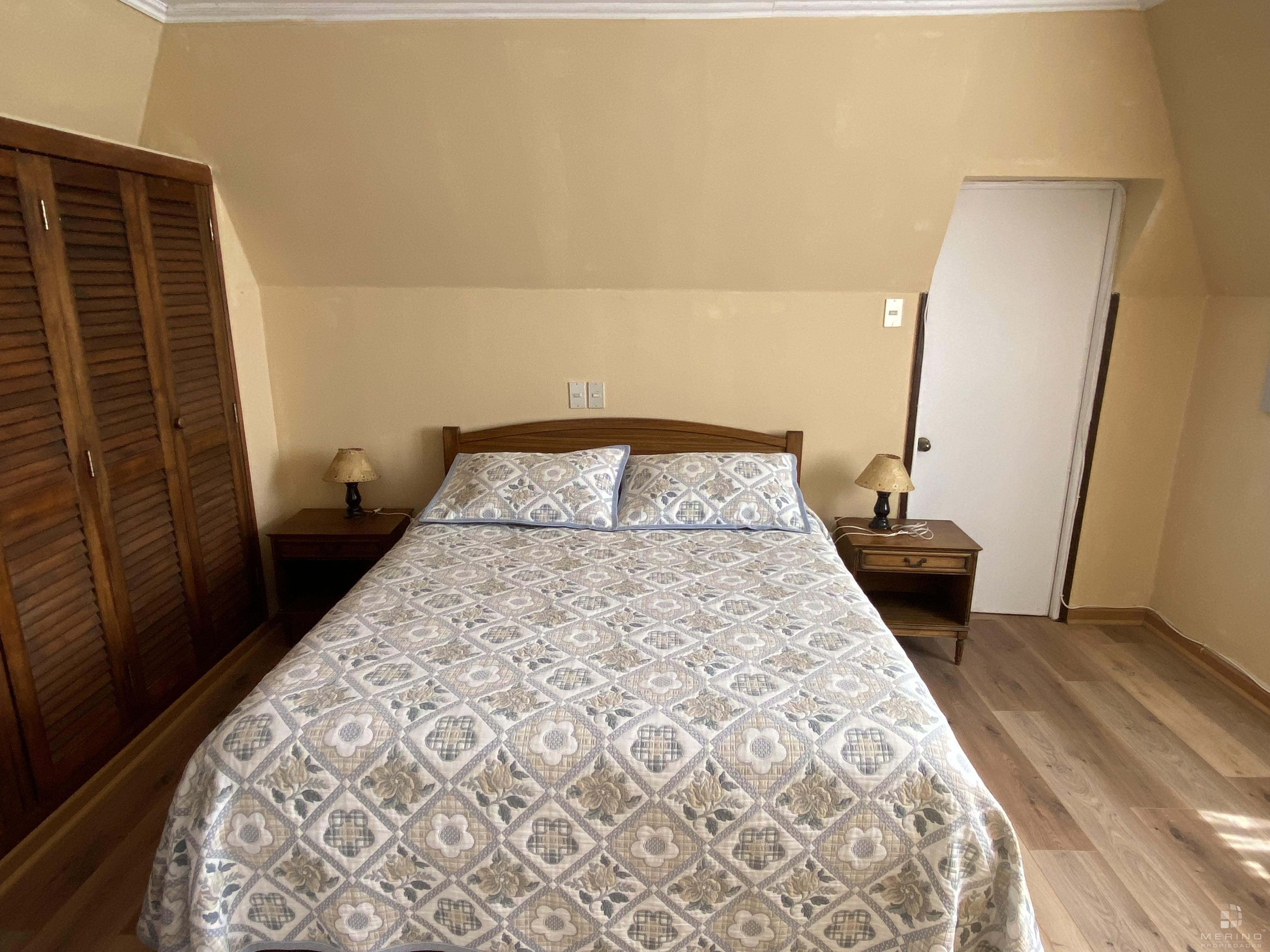 Amplia propiedad en condominio, dos pisos, 5 dormitorios, 4 baños, mas área de servicio con dormitorio y baño, agradable cocina cerrada amoblada, living y comedor en dos ambientes y con piso de parquet, recibidor, sala de estar, lavandería, lindo patio y antejardin con estacionamiento para 3 vehículos.